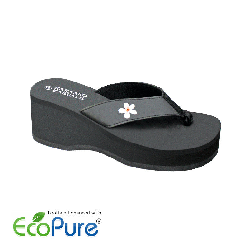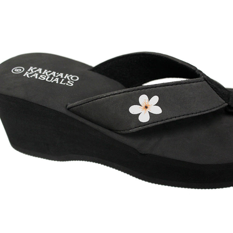 The Plumeria Wedge adds comfortable lift with a simple, polished look finished with a subtle plumeria detail on the strap. Easy to dress up or keep casual, this style works wherever the day takes you.